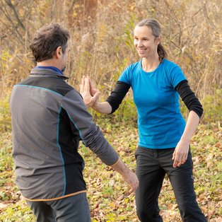 Sich in der eigenen Mitte zu verankern bedeutet, sich auf einen tiefgreifenden Prozess einzulassen: denn es sind Ängste, die uns „nach oben hin verspannen“. Auch hinter dem omnipräsenten „Stress“ steht nichts anderes als Angst. Es braucht den Aufbau geistiger Ruhe und Ge-lassen-heit, um „inneren Boden unter den Füßen zu finden“. Gleichzeitig schenkt wiederum die körperliche Auseinandersetzung hin zu mehr „Baum-Kraft“ in unserer Haltung geistige Entspannung und Beruhigung.